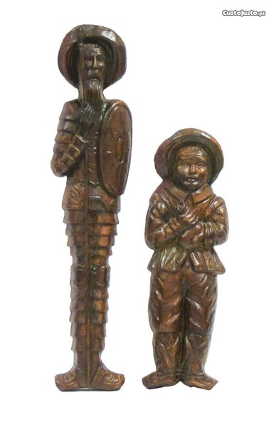 Dom Quixote e Sancho Pança, duas esculturas de terracota pintada.
