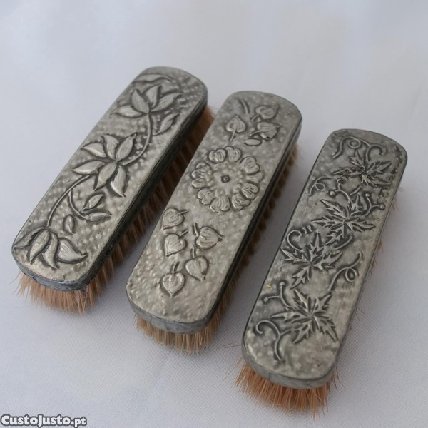 Escovas antigas em estanho trabalhado