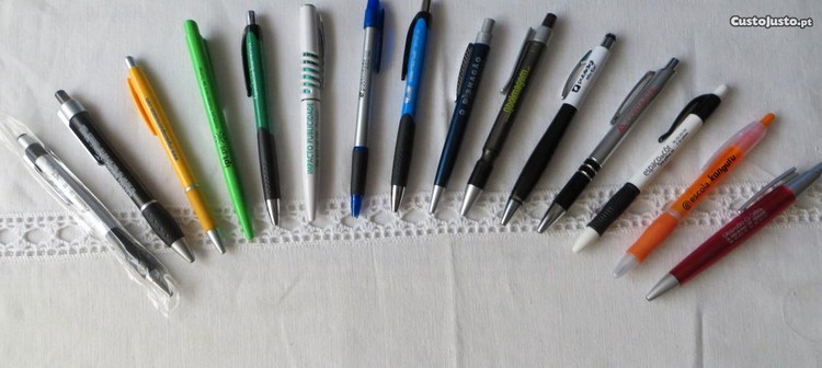 Preço: 15 €Esferográficas publicitárias - Lote 25 - Todas antigas mas novas, diferentes e a escrever bem.