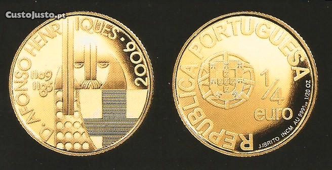 Moeda de 1/4 euro de 2006 de D. Afonso Henriques, em ouro, acabamento (Flôr de Cunho), na carteira original da Imprensa Nacional - Casa da Moeda. Foram cunhados 30.000 exemplares. Por favor veja as imagens.