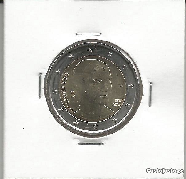 Moeda de 2 euro de 2019 de Itália, (alusiva a Leonardo da Vinci), no estado de conservação de (Soberba). Por favor veja as imagens. Custos de envio 5 euro para uma ou mais peças de colecção.