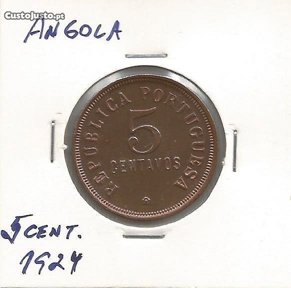 Moeda de 5 centavos de 1924 em bronze de Angola, no estado de conservação de (Soberba). Esta moeda, falta na colecção da grande maioria dos numismatas e é muito difícil de encontrar neste estado de conservação, por estes motivos pode mesmo ser considerada escassa. Por favor veja as imagens e faça uma visita aos outros artigos de colecção de Espadim.