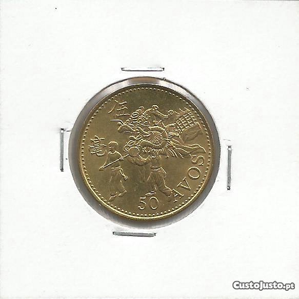 Moeda de 50 avos de 1993 em latão níquel de Macau, no estado de conservação de (Flôr de Cunho). Por favor veja as imagens. Custos de envio 5 euro para uma ou mais peças de colecção.