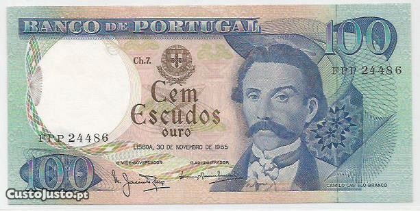 Nota de 100$00 chapa 7 de 30 de Novembro de 1965 de Camilo Castelo Branco, com o numero (Fpp 24486), no estado de conservação de (Nova). Por favor veja as imagens. Custos de envio 5 euro para 1 ou mais peças de colecção.