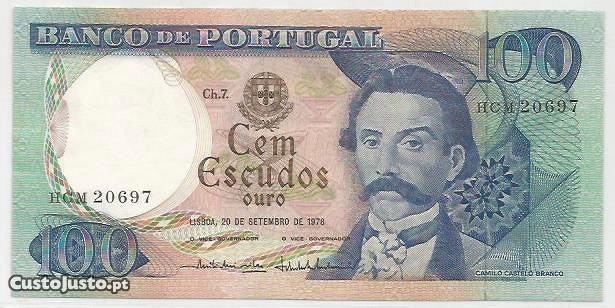 Nota de 100$00 chapa 7 de 20 de Setembro de 1978 de Camilo Castelo Branco, com os numero (Hcm 20697), no estado de conservação de (Nova). Por favor veja as imagens. Custos de envio 5 euro para uma ou mais peças de colecção.
