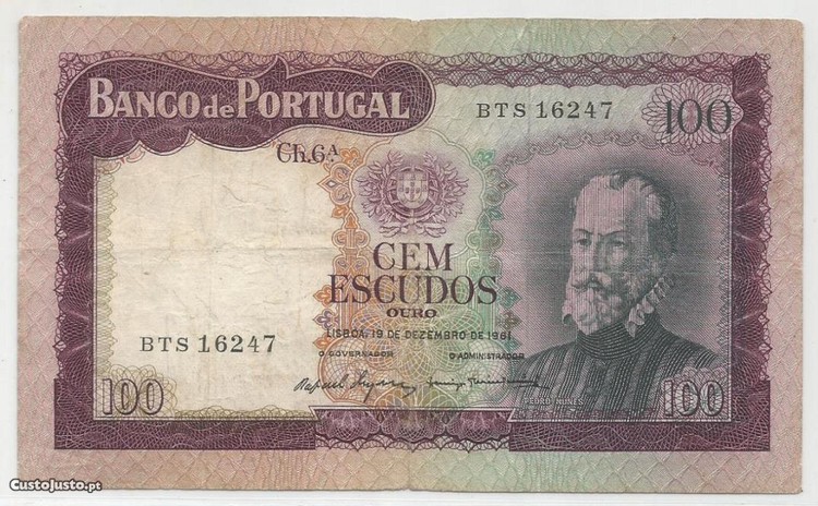 Nota de 100$00 chapa 6A de 19/12/1961, de Pedro Nunes, com o número (BTS 16247), no estado de conservação de (Mbc) (Muito Bem Conservada). Por favor veja as imagens e faça uma visita aqui aos outros artigos de colecção e antiguidades de Espadim pois encontrará moedas e notas das mesmas datas por outros preços e também noutros estados de conservação. Custos de envio 5 euro para uma ou mais peças de colecção.