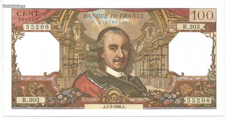 Preço: 80 €Espadim - Nota de 100 Francos de 1968 - França 206