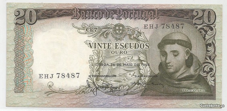 Nota de 20$00 de 26 de Maio de 1964 de Santo António, com a (Capicua) número (EHJ 78487), no estado de conservação de (Quase Nova a Nova). Por favor veja as imagens. Custos de envio 5 euro para uma ou mais peças de colecção.