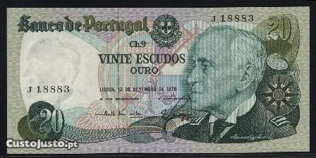 Preço: 35 €Espadim - Nota de 20$00 de 1978 Setembro - J 883