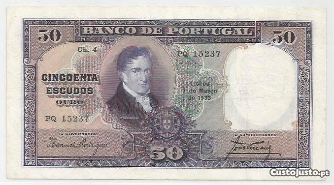 Nota de 50$00 chapa 4 de 7 de Março de 1933, de Borges Carneiro, no estado de conservação de (Mbc a Mbc+), com o numero (PQ 15237). Esta nota é escassa e ainda falta na colecção da grande maioria dos notafilistas. Por favor veja as imagens.