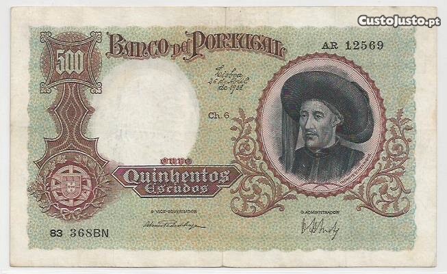Nota de 500$00 chapa 6 de 26/4/1938 do Infante Don Henrique, no estado de conservação de (Mbc a Mbc+), com o numero (Ar 12569). Por favor veja as imagens desta maravilhosa e escassa nota Portuguesa de grande valor que muito poucas Pessoas tem o privilégio de ter nas suas mãos ou na sua colecção. Faça uma visita aqui às outras peças de colecção de Espadim que disponibilizamos para si.