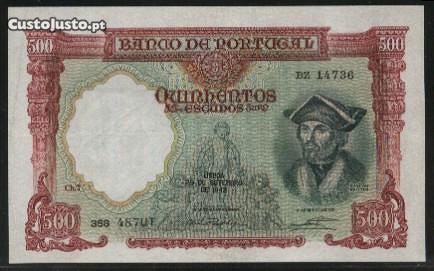 Nota de 500$00 chapa 7 de 29/9/1942 de Damião de Gois, no estado de conservação de (Bela), com o numero (BZ 14736). A nota está linda e neste estado de conservação pode ser considerada escassa. Por favor veja as imagens e visite as outras moedas e notas de Espadim, pois encontrará peças de colecção das mesmas datas por outros preços e também noutros estados de conservação. Por favor envie este convite a um(a) amigo(a) pois para além de lhe estar a dar a oportunidade de conhecer este mundo maravilhoso do coleccionismo, contribuirá para a valorização da sua própria colecção.