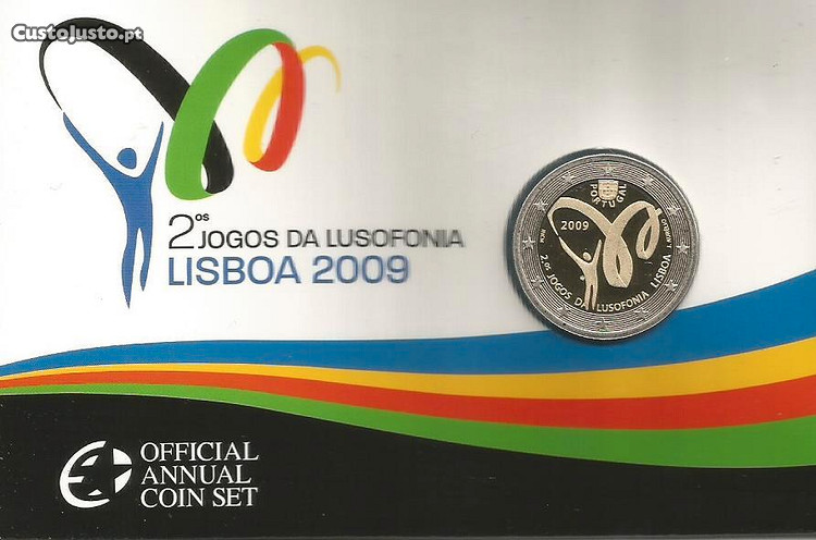 Moeda de 2 euro de 2009, comemorativa dos 2s, jogos da Lusofonia, com acabamento Proof, na carteira original da Imprensa Nacional - Casa da Moeda. Foram cunhados 15.000 Exemplares. Por favor veja as imagens. Atenção, custos de envio 5 euro para uma ou mais peças de colecção.