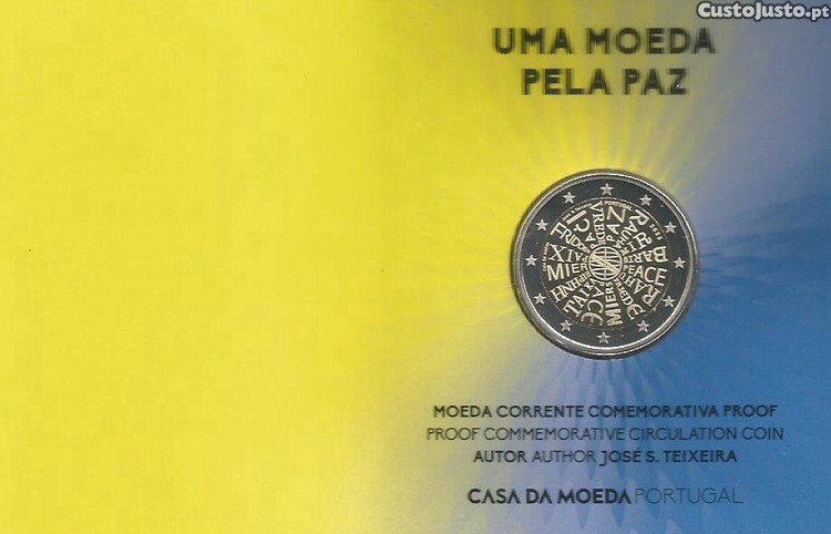 Moeda de 2 euro de 2023, comemorativa de (Pela Paz), com acabamento Proof, na carteira original da Imprensa Nacional - Casa da Moeda. Foram cunhados 7.500 Exemplares. Por favor veja as imagens. Atenção, custos de envio 5 euro para uma ou mais peças de colecção.