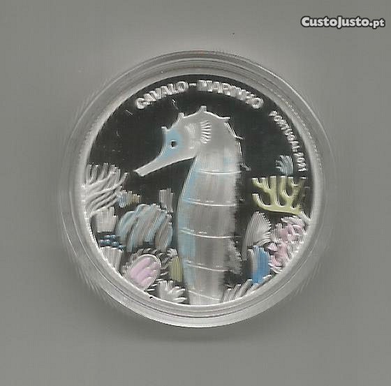 Moeda de 5 euro de 2021, comemorativa do Cavalo Marinho, da série Espécies de Animais Ameaçados, em acabamento Proof no estojo original numerado (1194 / 2000), da Casa da Moeda. Foram cunhados 2.000 (dois Mil) exemplares. (Moeda Colorida). Esta moeda encontra-se esgotada na Casa da Moeda desde o seu lançamento. Atenção, custos de envio 5 euro para uma ou mais peças de colecção.