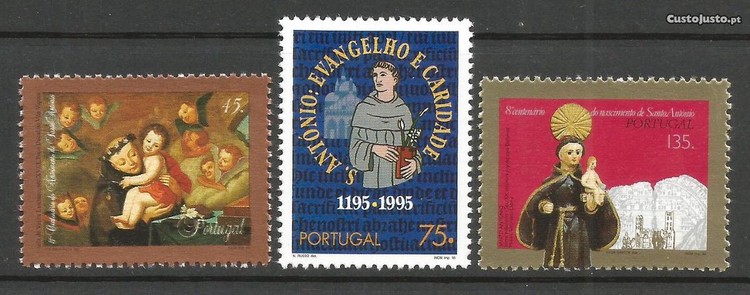 Colecção Completa, Série 6 valores de 1995, comemorativos do 8 Cent do nascimento de St António. 3 Valores, respectivamente de 45$00, 75$00 e 135$00 Atenção, Selos Novos (sem charneira). Custos de envio 5 euro para uma ou mais peças de colecção.
