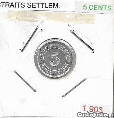 Estabelecimentos dos Estreitos - - - 5 Cents - 1903 - Edward VII - - - Moeda de Prata