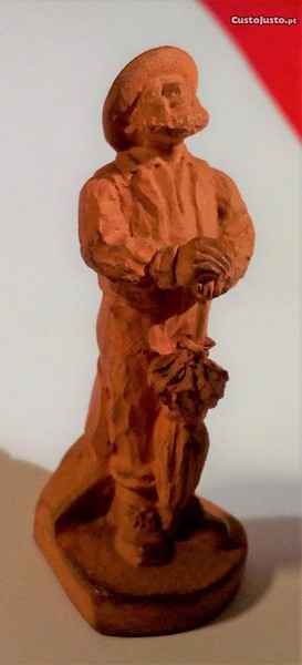 Estatueta em barro, com 5,5 cm de altura, do Zé Povinho, da autoria de Raphael Bordallo Pinheiro, produzida por volta de 1919, na fábrica de Faianças das Caldas, sob a direção do seu filho, Manuel Gustavo Bordallo Pinheiro (1908/1920).