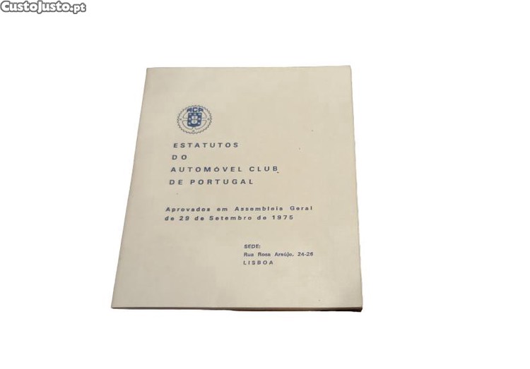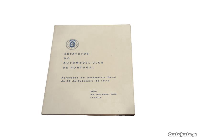 Pequeno livro ou brochura com os artigos dos Estatutos do Automóvel Club de Portugal, de finais de 1975 ou início de 1976, já que a Assembleia Geral onde foram aprovados teve lugar em 29 de Setembro de 1975.