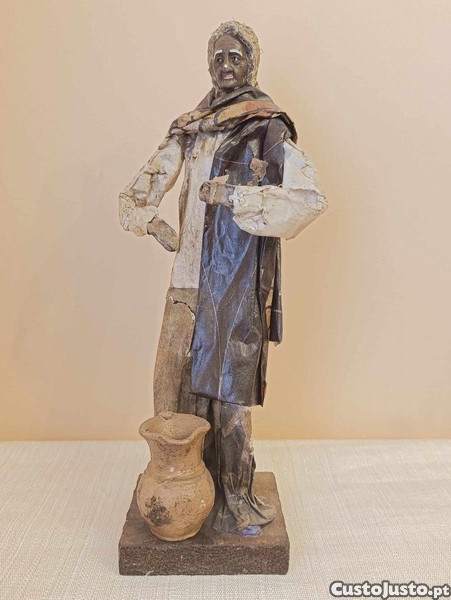 Preço: 12 €Figura artesanato mulher com pote em barro - papel maché