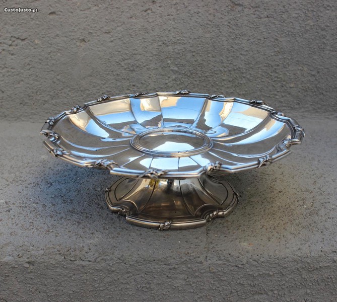 Fruteiro de pé em prata portuguesa, marcada e contrastada Javali. Ligeira decoração floral.