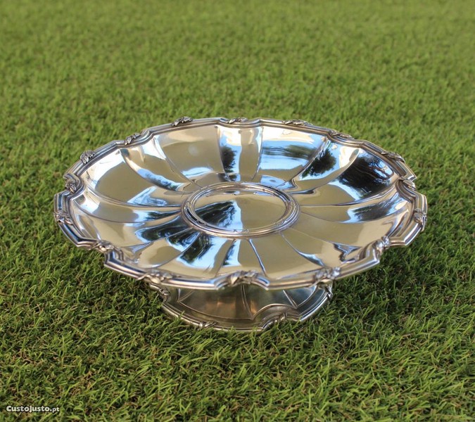 Fruteiro de pé em prata portuguesa, marcada e contrastada Javali. Ligeira decoração floral.