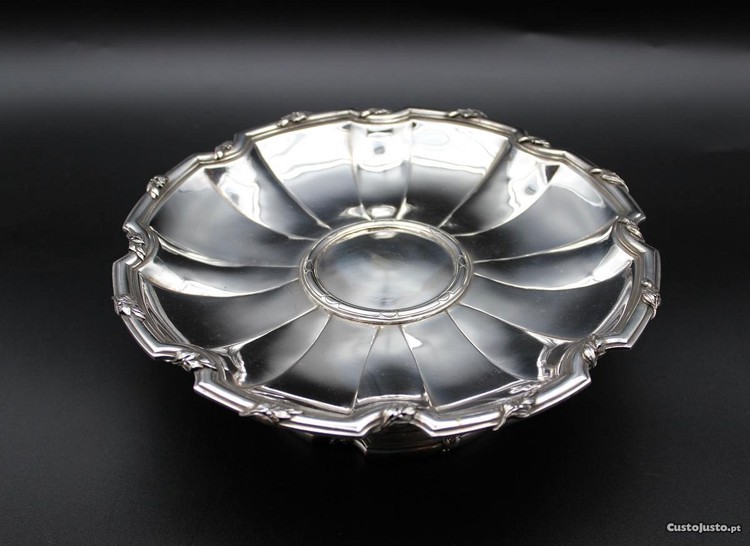 Fruteiro de pé em prata portuguesa, marcada e contrastada Javali. Ligeira decoração floral.