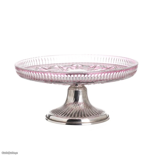 Português, em cristal colorido com decoração lapidada com pé em prata com contraste.