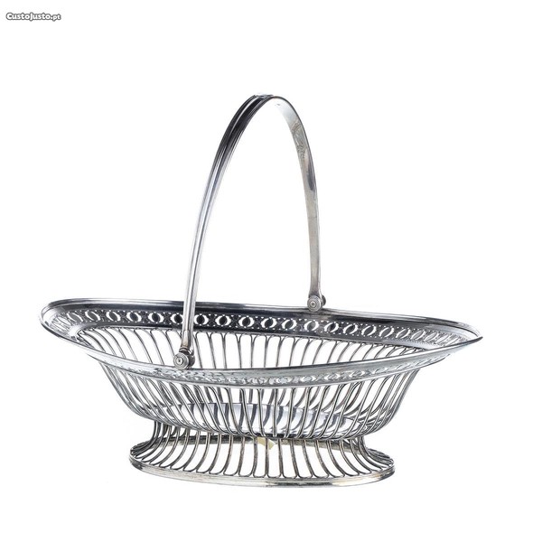 Português, do início do séc. XX, oval em prata com decoração vazada e gravada, de asa articulada.