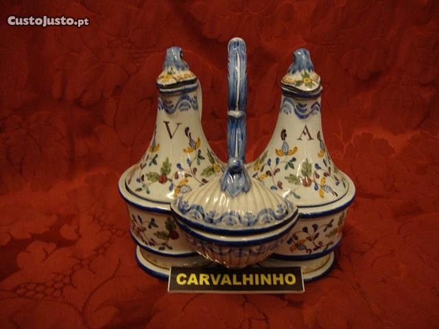Galheteiro em faiança do Carvalhinho, antigo, pintado à mão.
