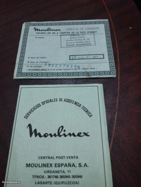 Preço: 3 €Garantia Moulinex 23 julho 1977