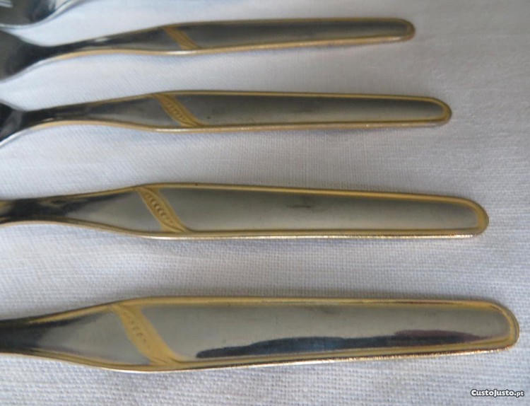 O trabalhado nestes garfos, são mesmo em ouro e não com banho de ouro. Tanto que podem ser usados, lavados até na máquina, que é ingastável.