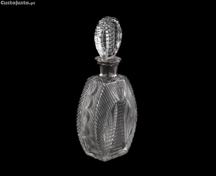 Garrafa em cristal com gargalo em prata, marcada e contrastada.