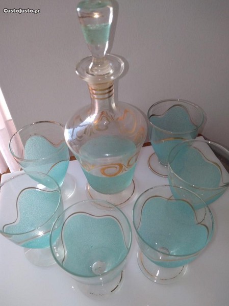 Preço: 47 €Garrafa / licoreiro e 6 copos de vidro areado