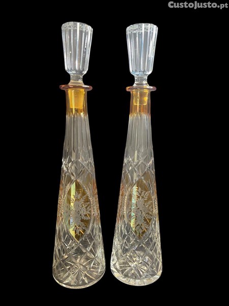 Garrafas antigas para licor ou vinho em cristal lapidado.