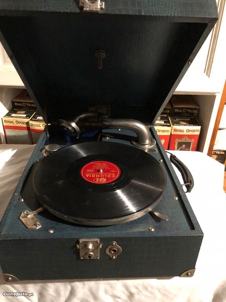 gramofone antigo com mala* oferta um vinil bom estado a funcionar