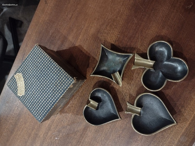 Caixa e 4 peças em Metal com autocolante ao Bazar do Porto