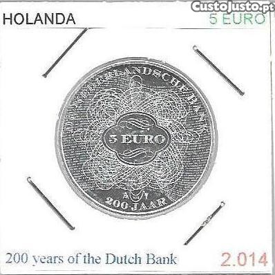 Holanda - - - 5 Euros - 2014 - - - 200º Aniversário do Banco dos Países Baixos - - - Moeda