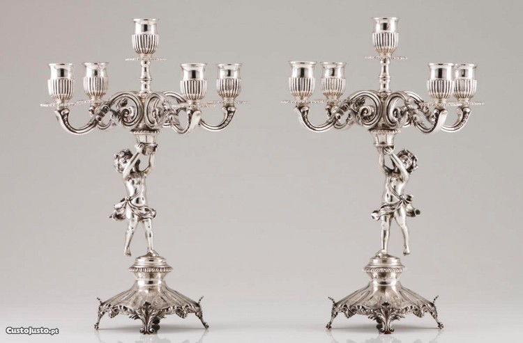 Invulgar par de Candelabros antigos de 5 lumes em Prata