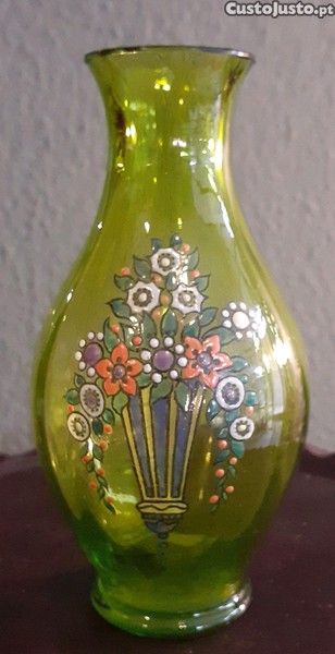 Jarrinha Baccarat ligeiramente gomada,pintura esmalte arte nova, alt.13cm, excelente estado.