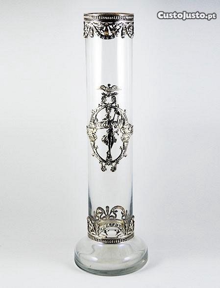 Grande jarra em vidro com três aplicações em prata portuguesa estilo arte nova, Topázio, contraste "Águia".