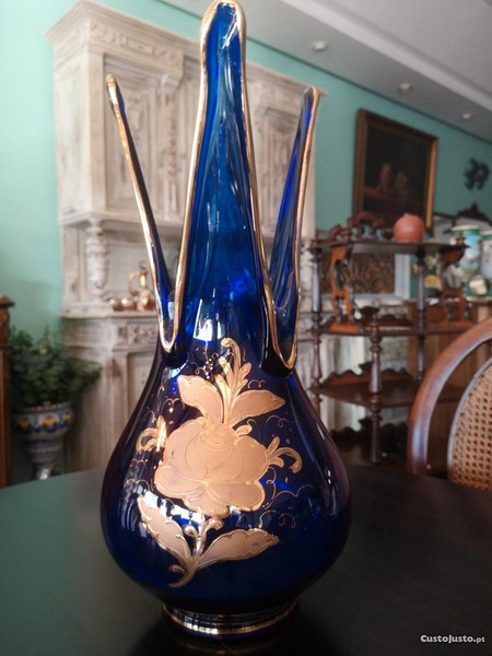 Preço: 85 €Jarra vidro azul com pintura a ouro