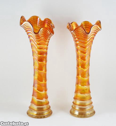 Par de jarras em vidro "casca de cebola" com decoração relevada ondulada.