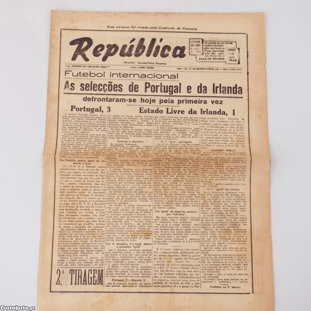 Na manchete da capa lê-se "As selecções de Portugal e Irlanda defrontaram-se hoje pela primeira vez
