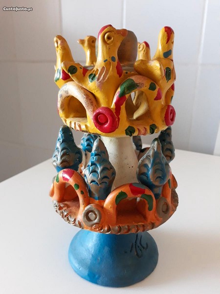Escultura em barro pintado a mão muito antigo altura 19cm com dois pequenos defeitos assinado Julia Cota