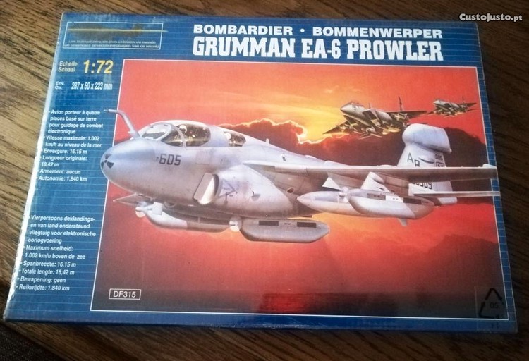 Fabricado pela empresa Zhengdefu, o Kit para montar deste bombardeiro americano, PROWLER, modelo GRUMMAN EA-6, na escala 1:72, encontra-se na sua caixa de origem que, para além de estar em muito bom estado, encontra-se ainda selada.