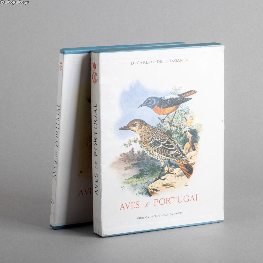 2 volumes originais: "Aves de Portugal" por D. Carlos de Bragança.