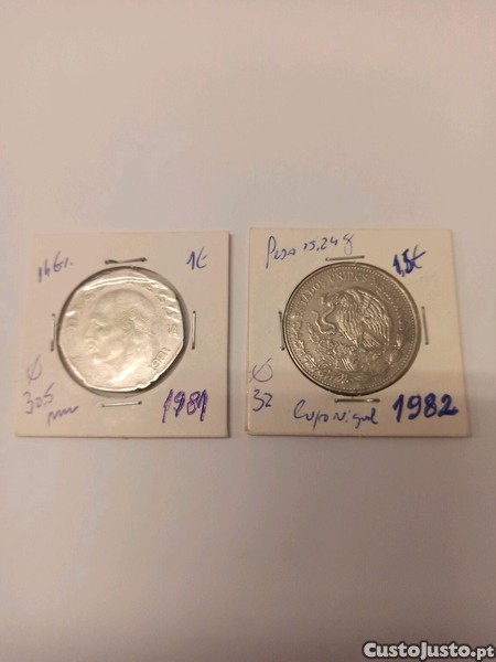Preço: 3 €Lote 2 moedas mexicanas 10 e 20 pesos 1981/2