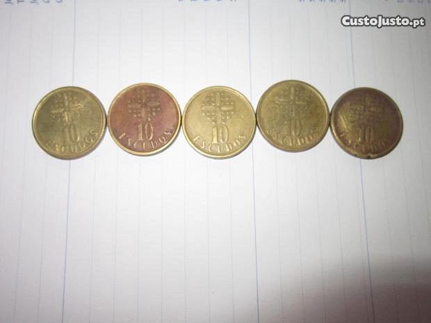 lote de 5 moedas antigas 10 escudos 1986