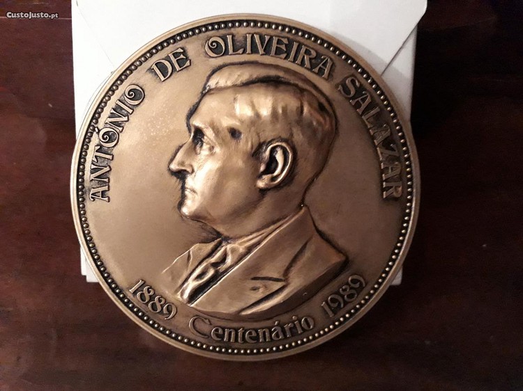 Medalha em bronze, com banho de ouro, comemorativa dos 100 anos de Oliveira Salazar.